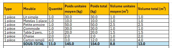 Le déménagement léger consiste à transporter un volume réduit (souvent 3 à 10 m³), sur une courte distance, sans emballage complet ni logistique lourde. C’est parfait pour :